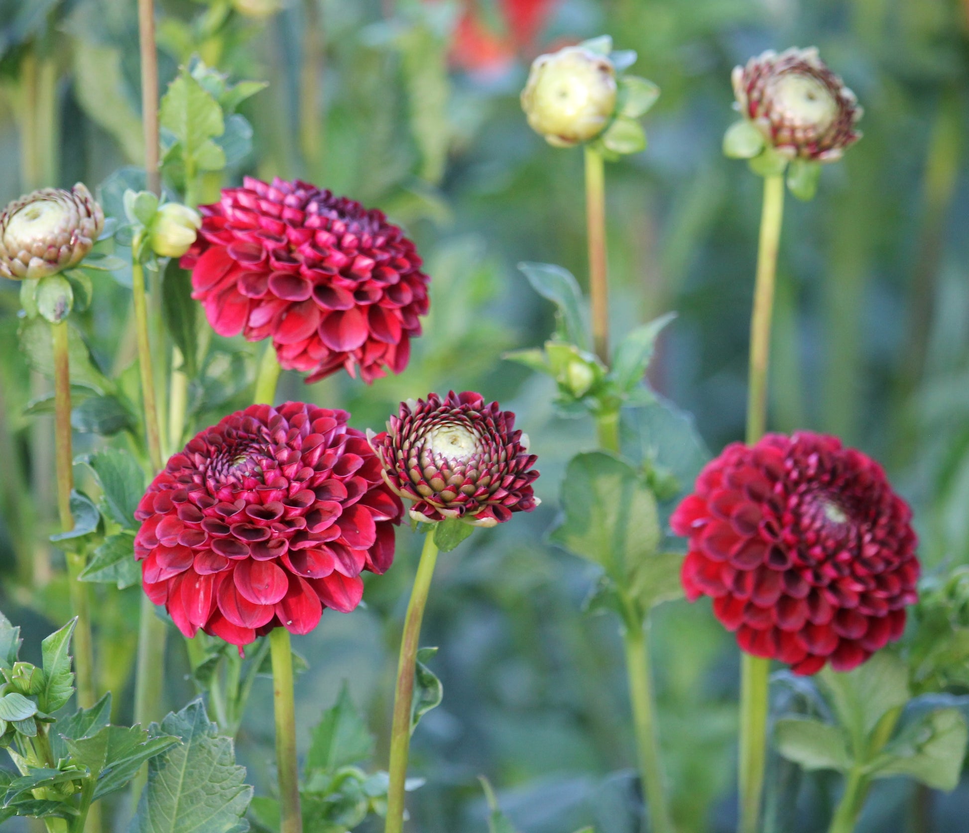 A surprise bonus variety, this little bloom quickly earned her keep as a solid, deep red. A perfect compliment to Danique! The plants all put out an incredible first flush like clockwork, then I had to wait a few weeks for the next flush. Excellent cut flower and workhorse for design work.